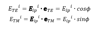 以上のように定義されるeTE、eTM、に対し、アンテナの電界ベクトルEipiとの関係で偏波角φは定義され、ドット積・(太字)を内積として、